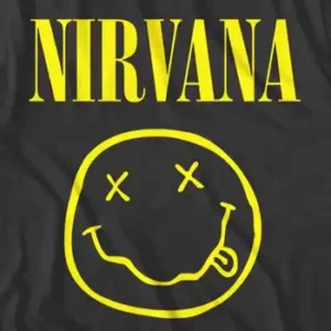The dark-yet-playful smiley face logo is the epitome of grunge, an alternative rock genre pioneered by the band Nirvana. The crooked mouth, stuck-out tongue, and X-shaped eyes are a gritty, provocative take on the classic smiley.